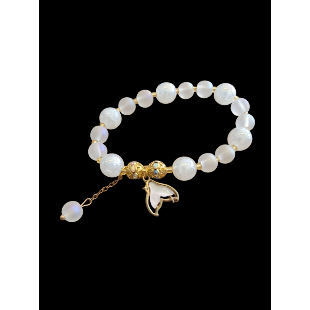 Design: White beaded bracelet with mermaid tail charm